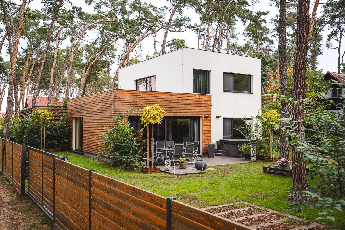 Před pěti lety koupili manželé 800 m2 velký pozemek s chátrající chatou. Důvodem nebyl původní objekt, ale samotná lokalita. Celoročně žijí v lese, daleko od rušných silnic a přitom kousek od Prahy. Manželé zvolili konstrukční systém ze dřeva, ačkoli jejich předchozí dva domy byly z pálené cihly a monolitického betonu. Díky bohatým zkušenostem s výstavbou už Martin, majitel domu, věděl, jak urychlit proces nejen na stavebním úřadě. Od podpisu smlouvy se stavební firmou do stěhování do nového domu uběhl necelý rok.