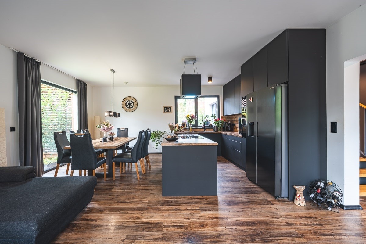 Před pěti lety koupili manželé 800 m2 velký pozemek s chátrající chatou. Důvodem nebyl původní objekt, ale samotná lokalita. Celoročně žijí v lese, daleko od rušných silnic a přitom kousek od Prahy. Manželé zvolili konstrukční systém ze dřeva, ačkoli jejich předchozí dva domy byly z pálené cihly a monolitického betonu. Díky bohatým zkušenostem s výstavbou už Martin, majitel domu, věděl, jak urychlit proces nejen na stavebním úřadě. Od podpisu smlouvy se stavební firmou do stěhování do nového domu uběhl necelý rok.