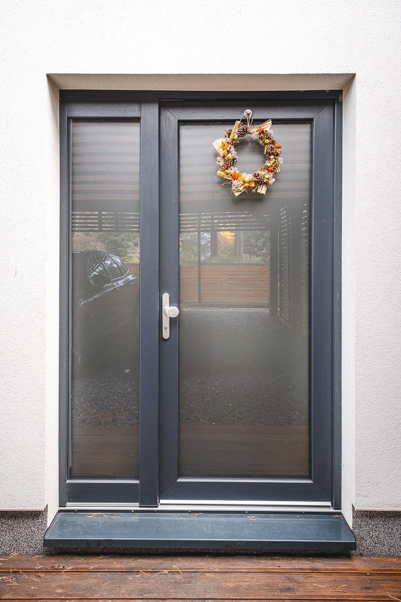 Dům je osazen moderními okny a dveřmi s dobrými tepelněizolačními vlastnostmi, odpovídajícími nízkoenergetickému standardu stavby