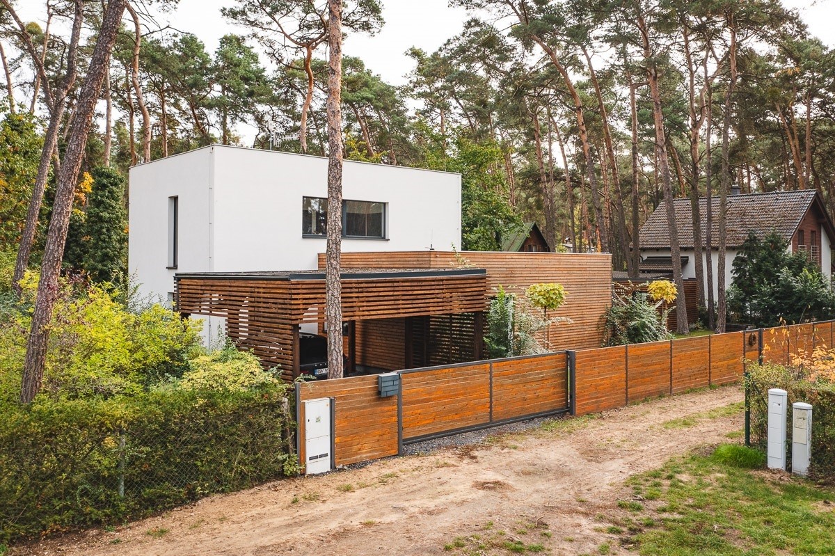 Před pěti lety koupili manželé 800 m2 velký pozemek s chátrající chatou. Důvodem nebyl původní objekt, ale samotná lokalita. Celoročně žijí v lese, daleko od rušných silnic a přitom kousek od Prahy. Manželé zvolili konstrukční systém ze dřeva, ačkoli jejich předchozí dva domy byly z pálené cihly a monolitického betonu. Díky bohatým zkušenostem s výstavbou už Martin, majitel domu, věděl, jak urychlit proces nejen na stavebním úřadě. Od podpisu smlouvy se stavební firmou do stěhování do nového domu uběhl necelý rok.