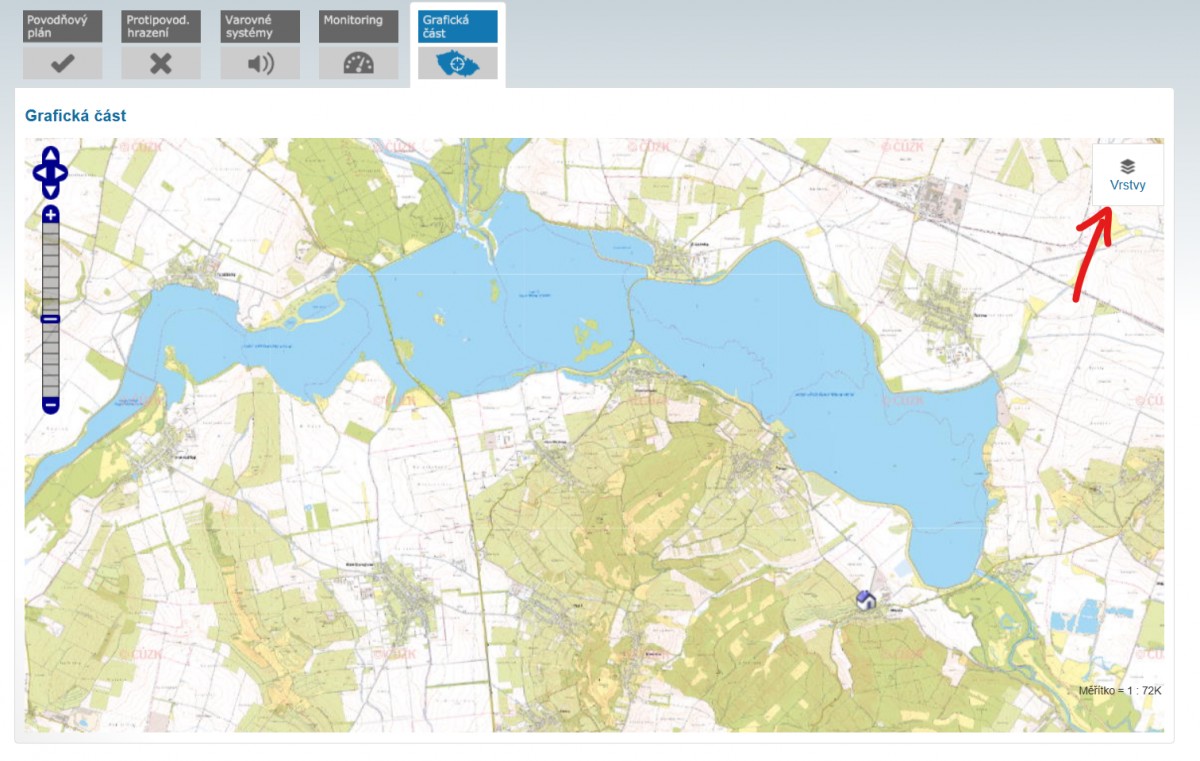 Musíte přejít na mapový portál příslušného povodí podle toho, v jaké části republiky se pozemek nachází