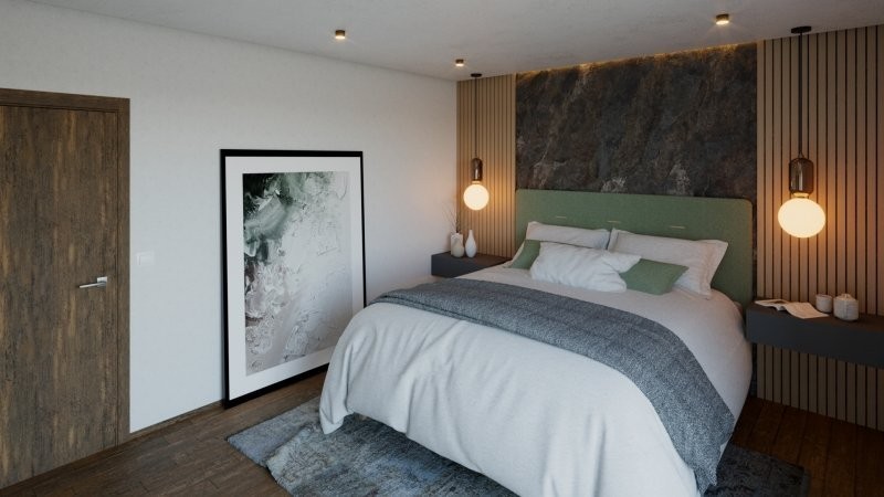 V rodinném domě se nachází ložnice, dva dětské pokoje a pracovna, která může zároveň sloužit jako pokoj pro hosty