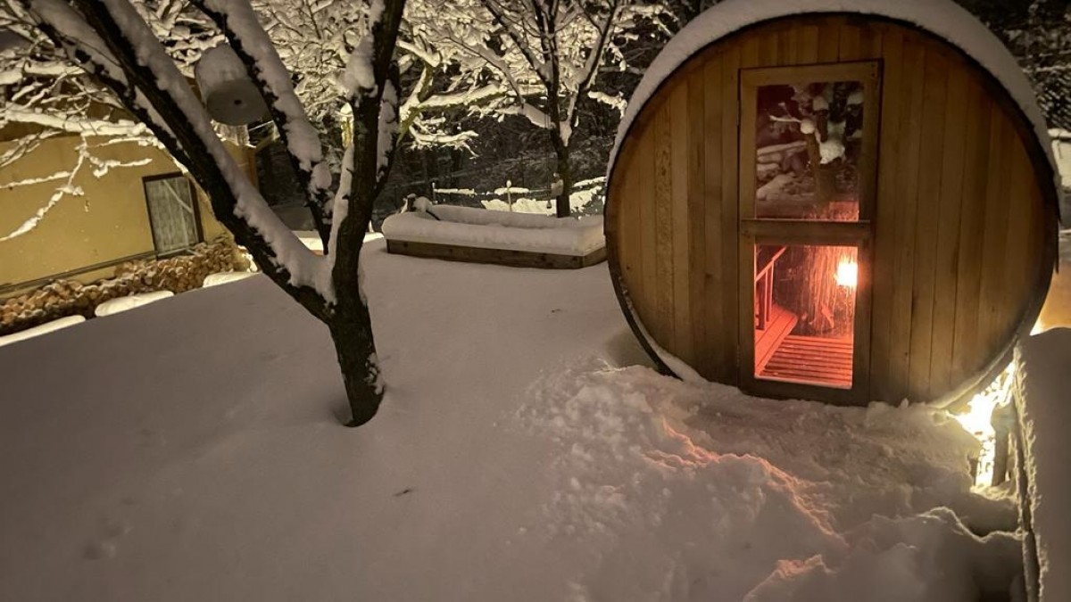Asi to, že bychom ji postavili už dříve. Furt jsme to odkládali, nakonec nás motivovala až ta omezení. Kdyby nebyla, tak bychom se možná k tomu nikdy ani neodhodlali a pořád bychom dnes chodili někam do veřejného wellnessu a mačkali se tam s cizími lidmi. také jsme tenkrát zvažovali, jestli tam mít uzavřenou odpočívárnu. Tu jsme neudělali a jak se ukazuje, není ani potřeba. Člověk si odpočine venku a když je mu zima, může zase zalézt na další kolo saunování.
