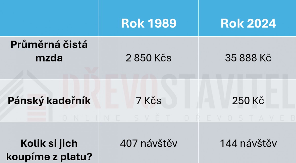 Také pánský kadeřník od dob socialismu výrazně podražil. Na srovnání se podívejte v tabulce