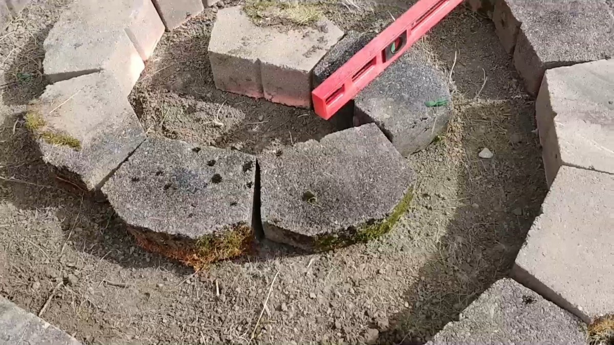 Začínáme s pokládkou první vrstvy cihel a postupně je usazujeme do připraveného podkladu podle předem zvoleného tvaru.