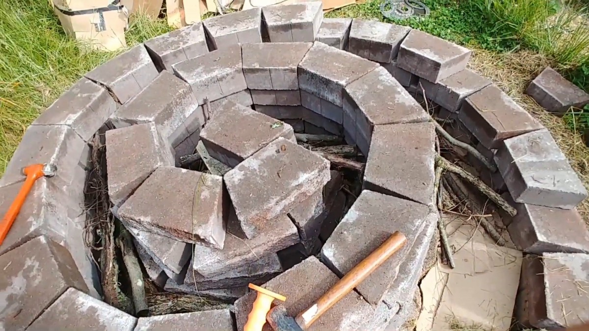 Finální úpravy tvaru spirály a dolaďování detailů před zasypáním zeminou.