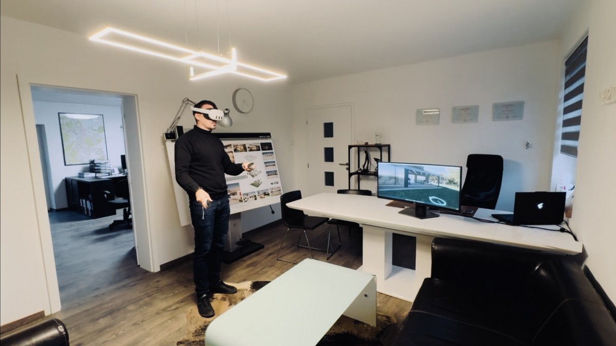 Při návrhu domu si každou místnost osadí nábytkem a pomocí virtuální reality nechává lidi, aby si dům prošli