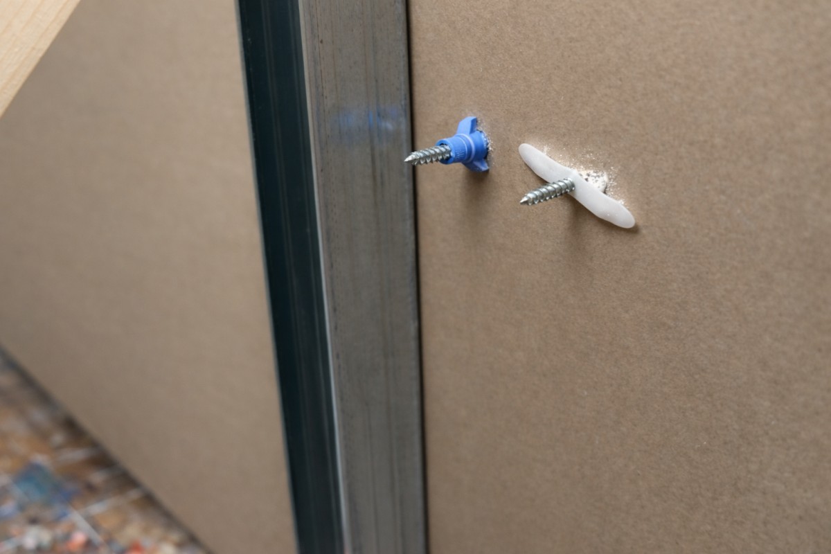 Srovnání dvou typů hmoždinek ukazuje rozdílné chování při montáži do sádrokartonu v blízkosti kovového profilu