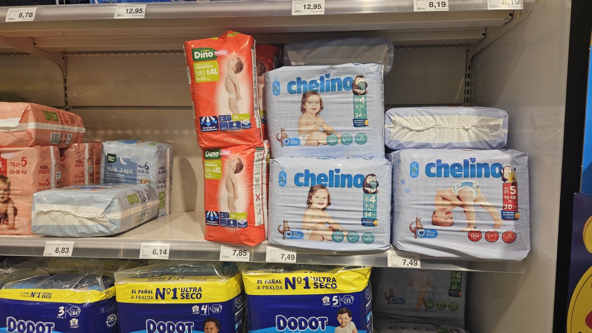 Balení plen, které zahrnuje desítky kusů, se na Kanárských ostrovech prodává zhruba za 6 až 8 eur, tedy kolem 150 až 200 korun za balení