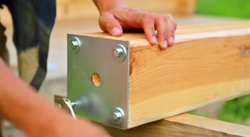 Nosné trámy střechy spojoval také kovovými úhelníky a šrouby, které pomáhají zvýšit pevnost celé konstrukce
