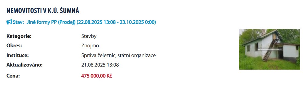 V okrese Znojmo je nabízena stavba za 475 tisíc korun