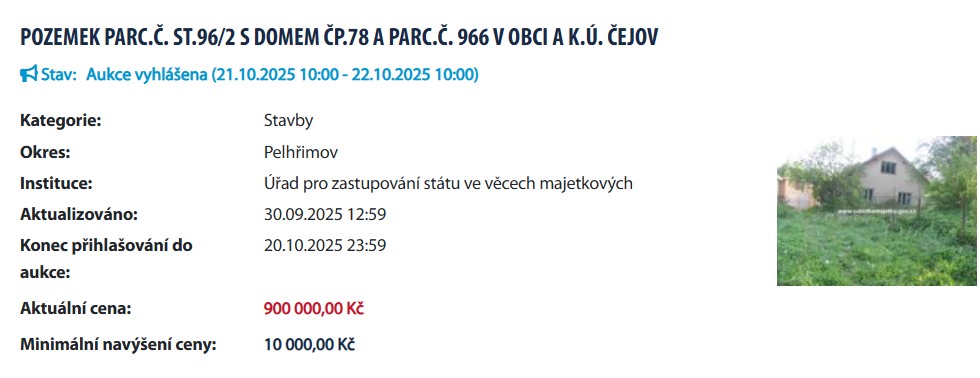 Trh s nemovitostmi si v poslední době žije svým vlastním životem. Mnozí nevěřícně sledují, jak se společně s růstem cen jejich sen o vlastním bydlení vzdaluje v nedohlednu. Pro ty, kteří podobný problém řeší, je tady však naděje. Mohou se podívat na aktuální nabídku státu. Ten totiž pravidelně prodává nepotřebný majetek. Mezi tímto majetkem se objevují také pozemky a stavby, které jsou často za velmi slušnou cenu.
