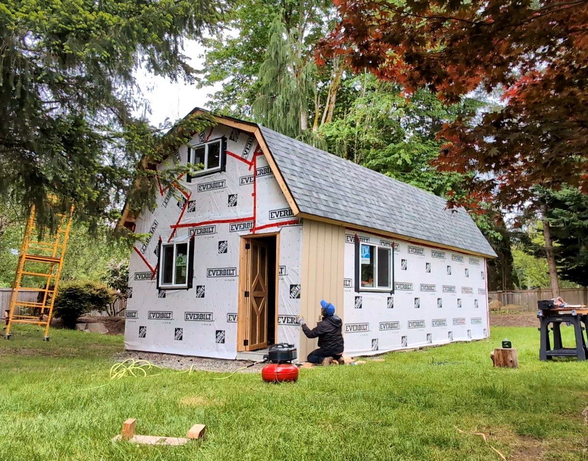 V domě jim velmi rychle ubýval úložný prostor. Šatna, kancelář i technická místnost byly zcela zaplněné a manželé tak byli nuceni přenášet věci i do garáže. V tom momentu si uvědomili, že se buď musí některých věcí zbavit, nebo si pořídit další úložný prostor mimo dům. Druhá varianta pro ně byla snesitelnější, a tak se rozhodli pro pořízení multifunkčního domku. Alex má zde nyní svou kancelář a pracovní dílnu.