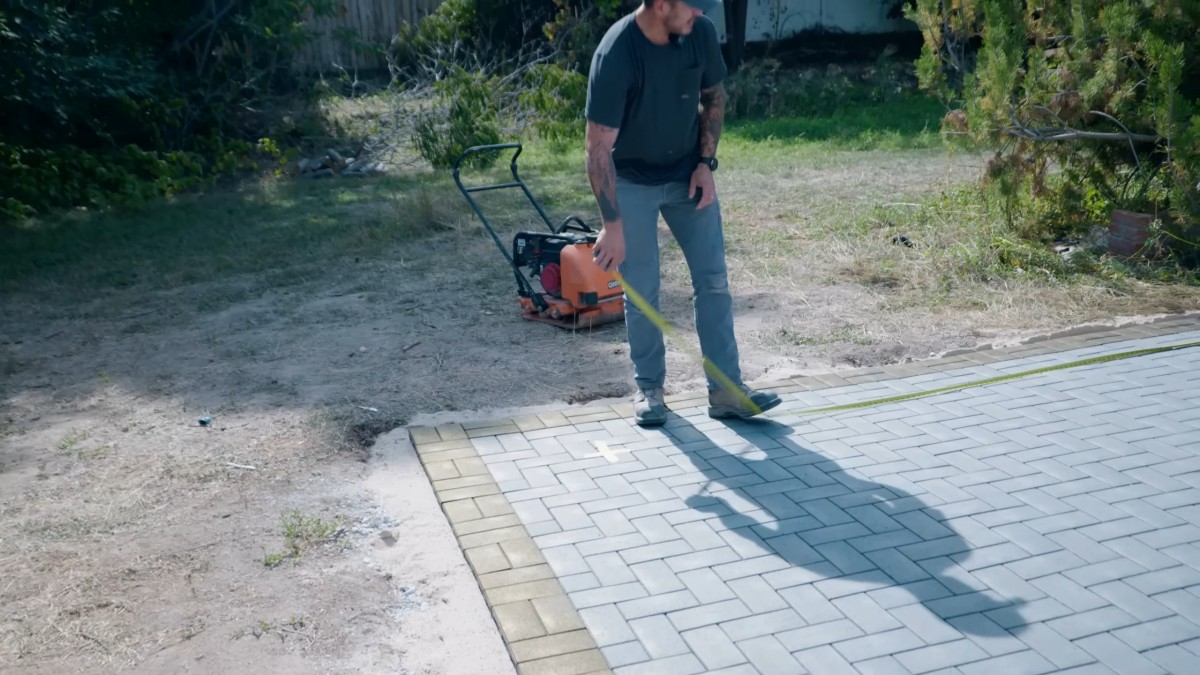 Pomocí svinovacího metru přesně odměříme vzdálenosti podél okraje plochy. Tyto míry určí polohu budoucích betonových základů naší pergoly.