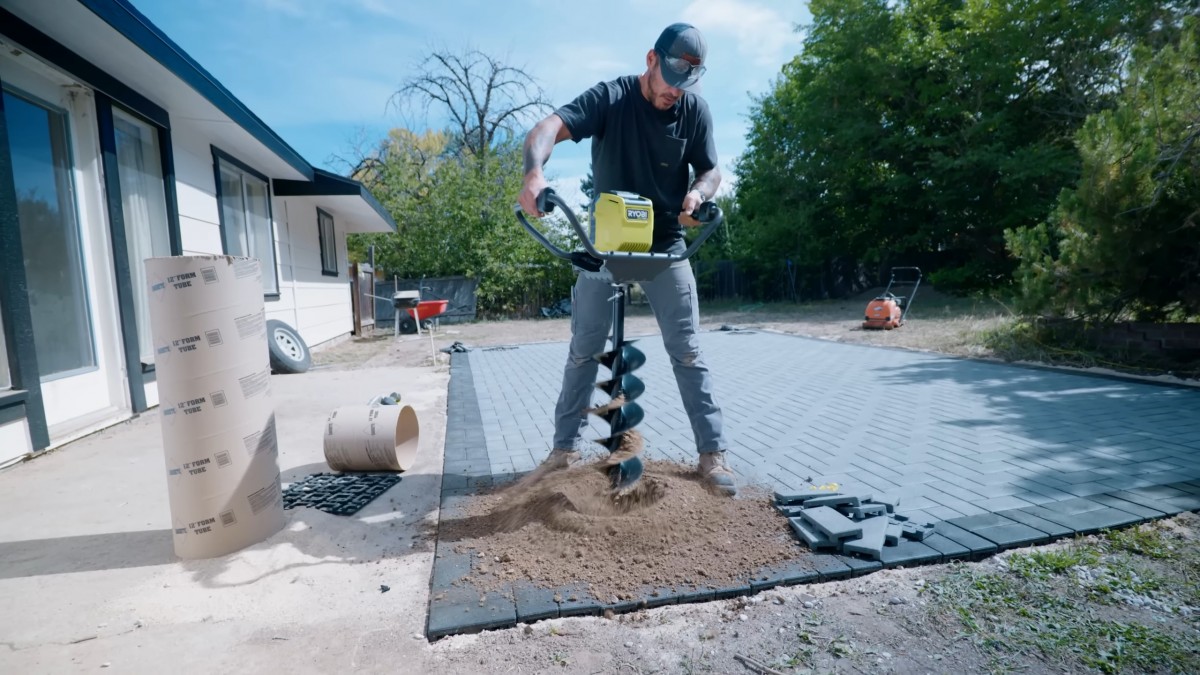 Vrták o průměru 20 cm se rychle prokouše do zeminy. Použití této strojní techniky výrazně zefektivní přípravu všech potřebných výkopů.