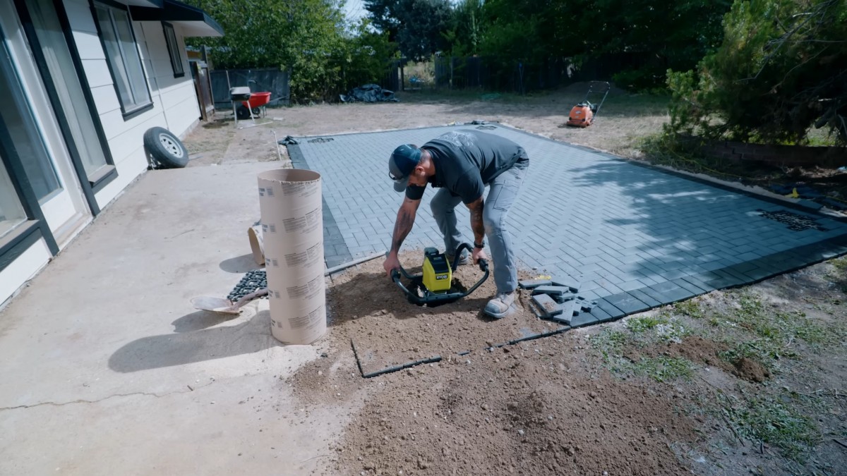 Těžký vrták plný hlíny vytáhneme ven z výkopu. Strojní vrtání sice šetří čas, ale příprava terénu bude stále vyžadovat dost fyzické námahy.