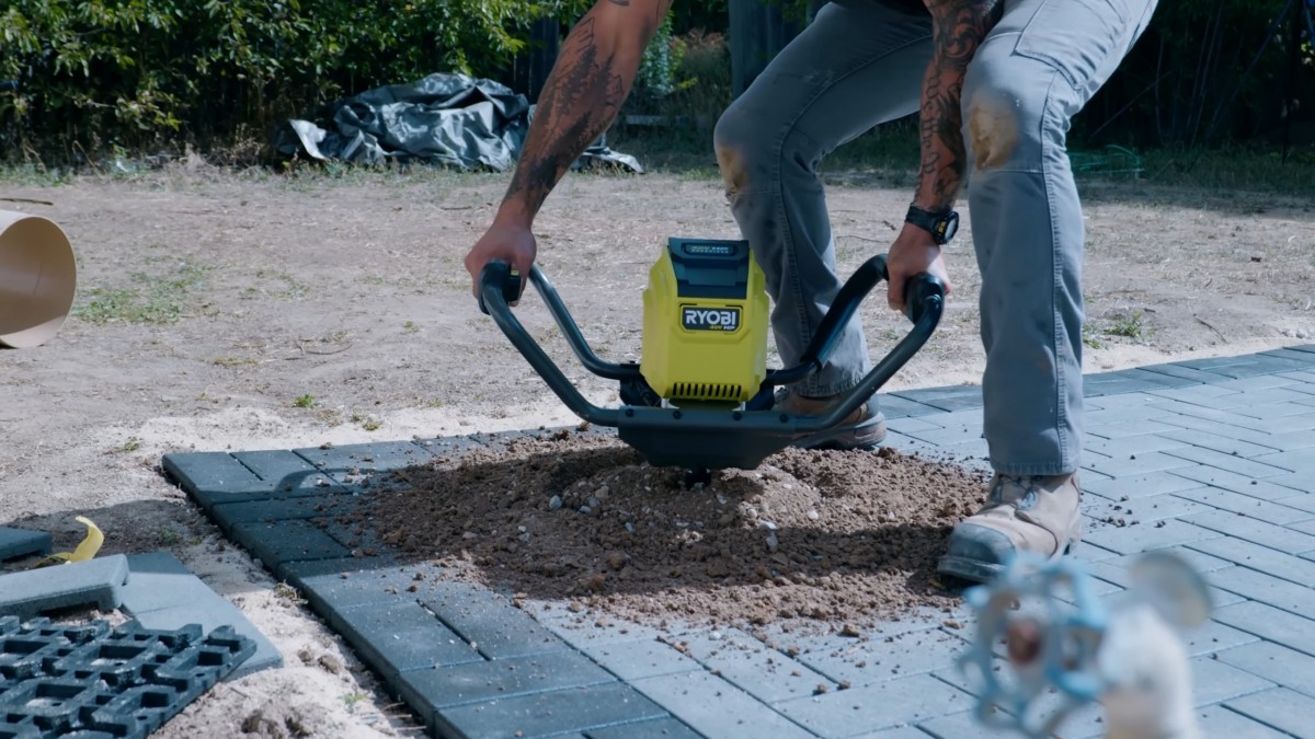Znovu nastartujeme motorový vrták a zahájíme hloubení další díry v řadě. Každý nosný sloup masivní pergoly vyžaduje naprosto precizní základ.