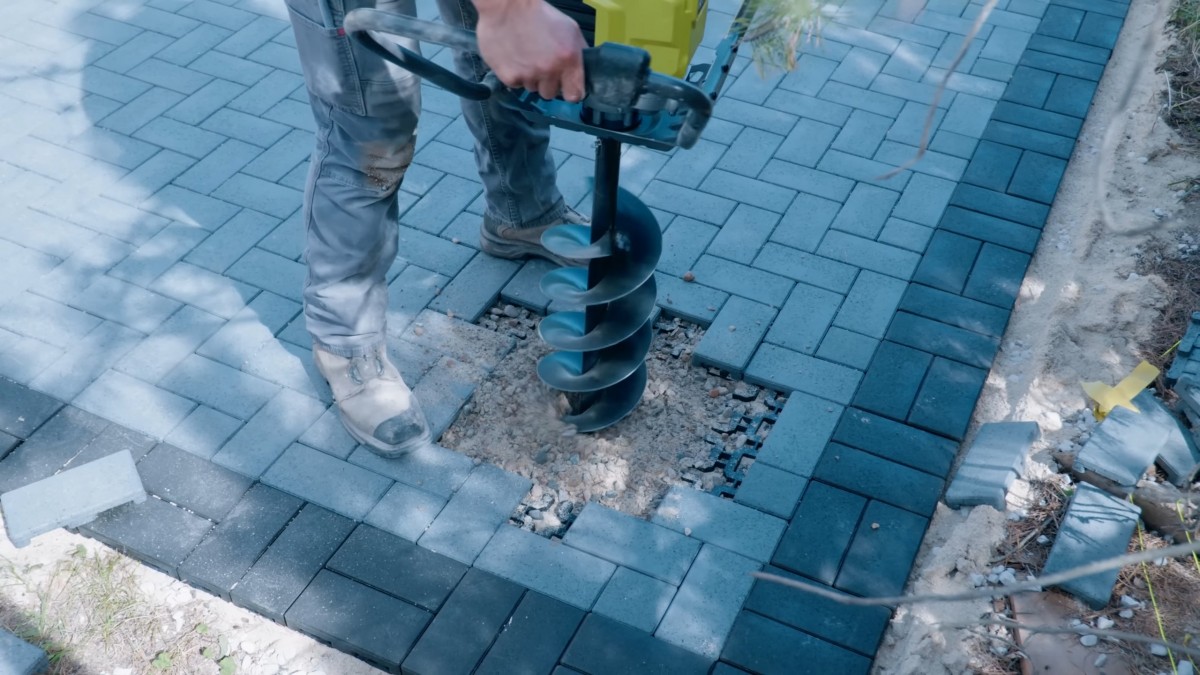 Detailním záběrem zkontrolujeme práci zemního vrtáku uvnitř výkopu. Prohloubení jámy výrazně přispěje k celkové stabilitě konstrukce.