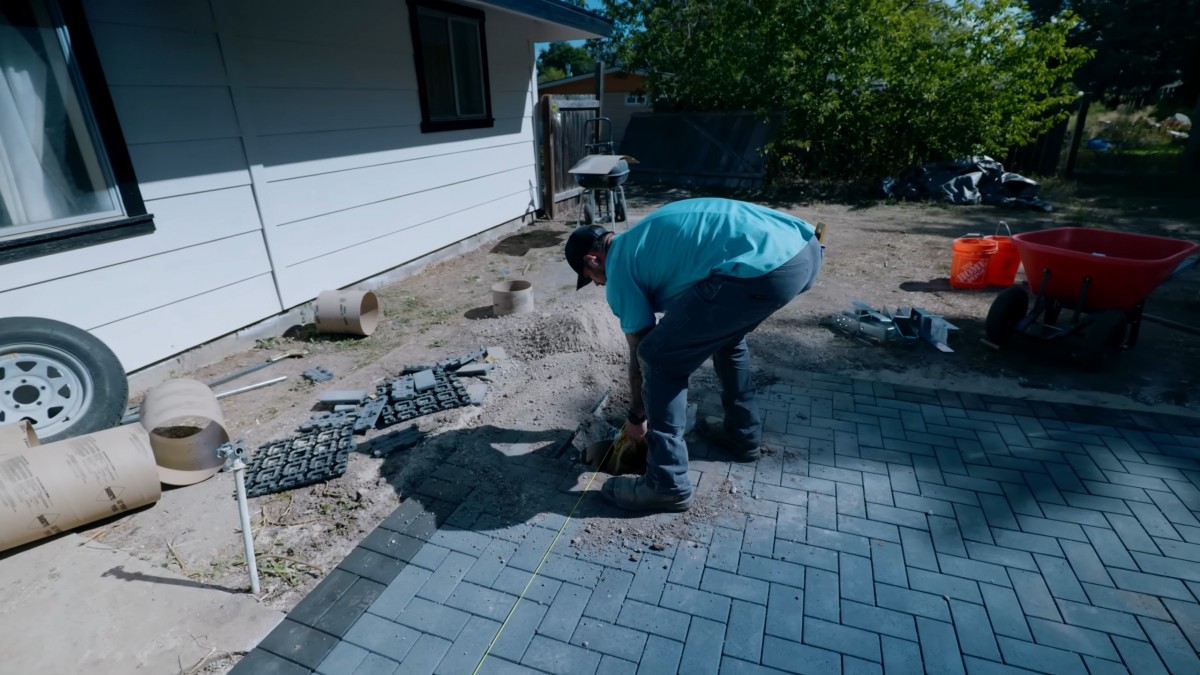 Ke stěnám usazené formy natlačíme hlínu pro její dokonalou fixaci. Trubka pro základ naší pergoly se tak při lití směsi vůbec nepohne.
