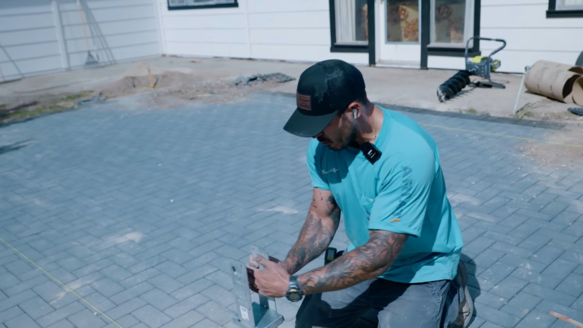 Pomocí zednické lžíce důkladně uhladíme povrch čerstvého betonu ve formě. Připravíme tak naprosto vodorovnou plochu pro usazení kotvy.