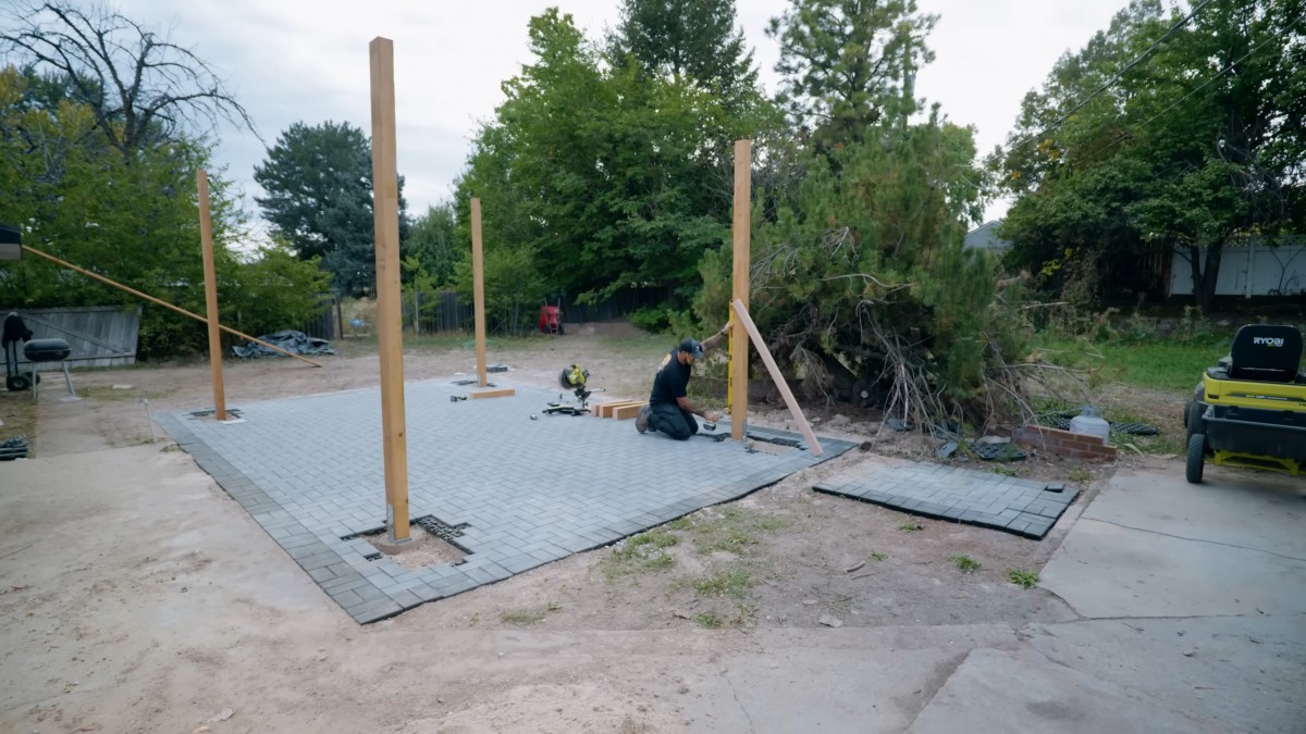 Dokončíme vztyčení všech čtyř hlavních pilířů naší nové pergoly. Vznikne tak základní nosná kostra, která spolehlivě unese těžké vrchní vrstvy.