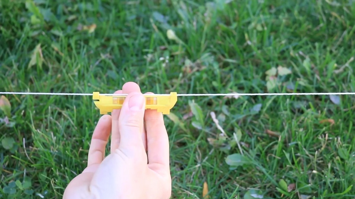 Správná rovina napnutého provázku se pečlivě kontroluje pomocí malé závěsné vodováhy.