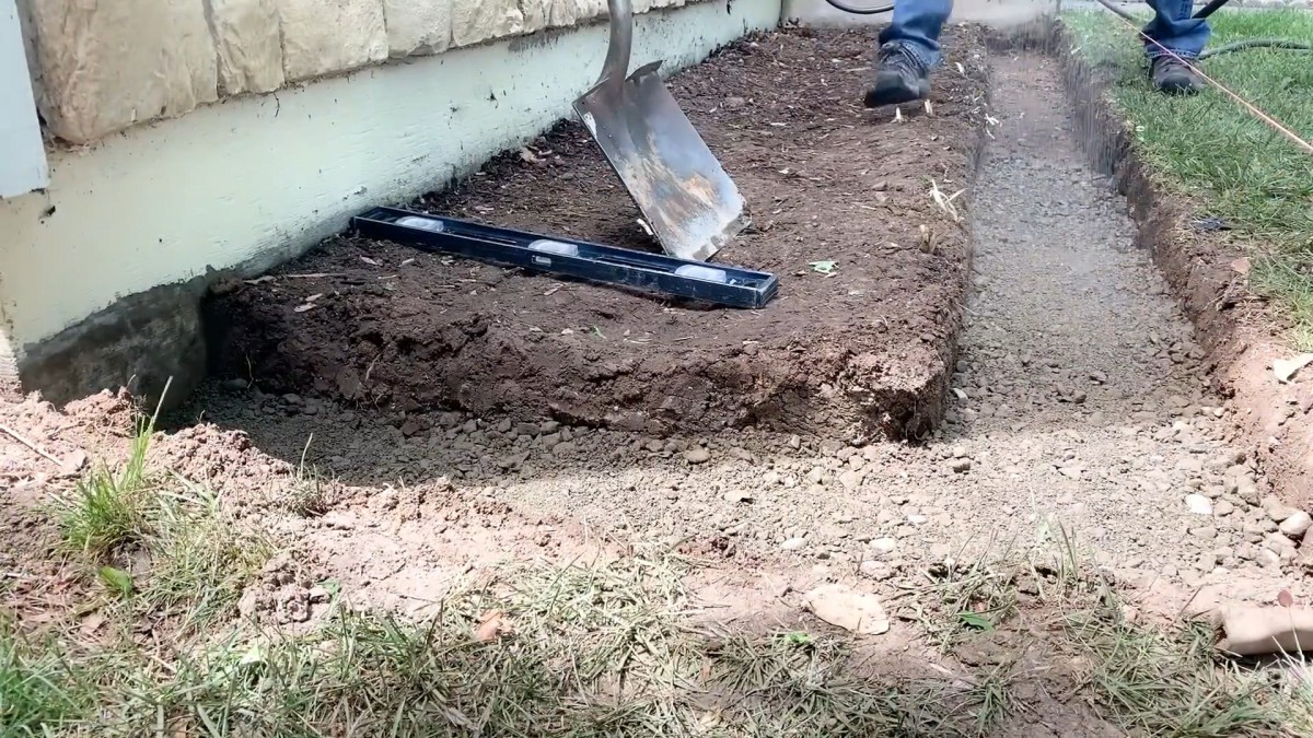 Štěrková vrstva se nahrubo urovnává
