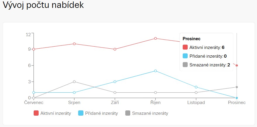 Vývoj počtu nabídek stavebních parcel v obci Horní Ředice si drží svou úroveň
