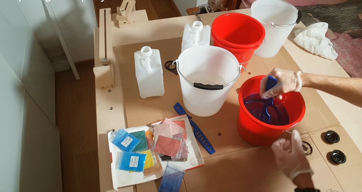 Přidáváme pigment a tvoříme charakter řeky. Barva dává projektu život.