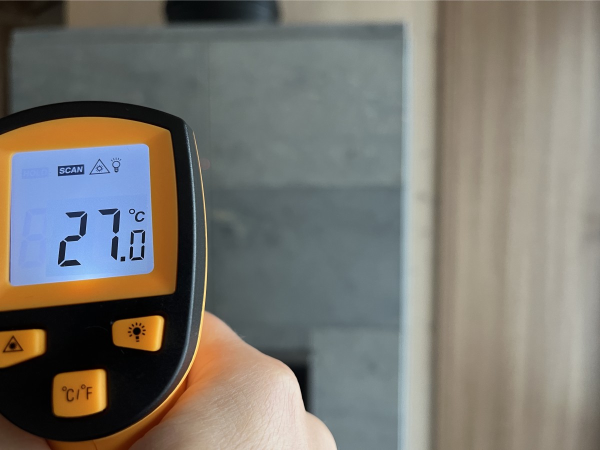 Před zahájením topení jsou akumulační kamna na dřevo poměrně chladná, mají 27 stupňů