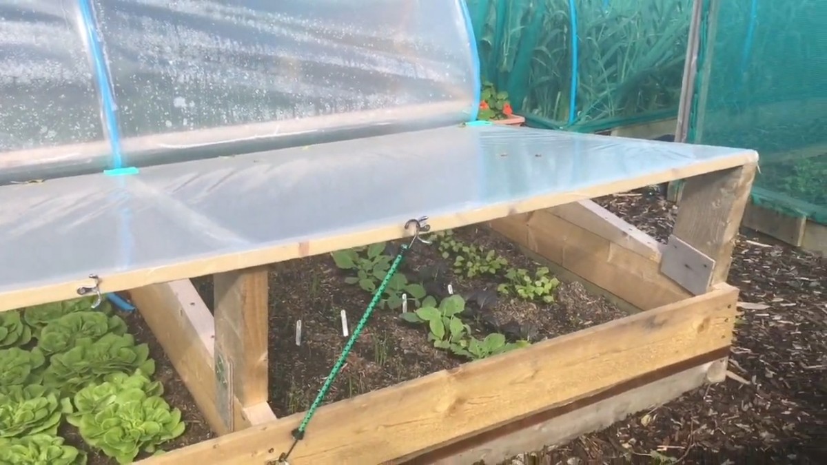 Záhon s průhledným krytem pro regulaci teploty a vlhkosti. Kryt chrání rostliny před mrazem a studeným větrem