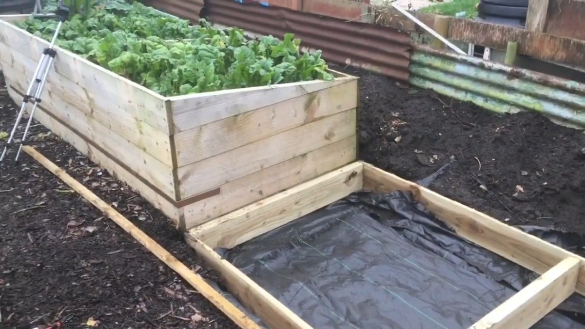 Detail rámu se zabezpečenou fólií. Chrání pěstební směs a udržuje rovnoměrnou teplotu půdy