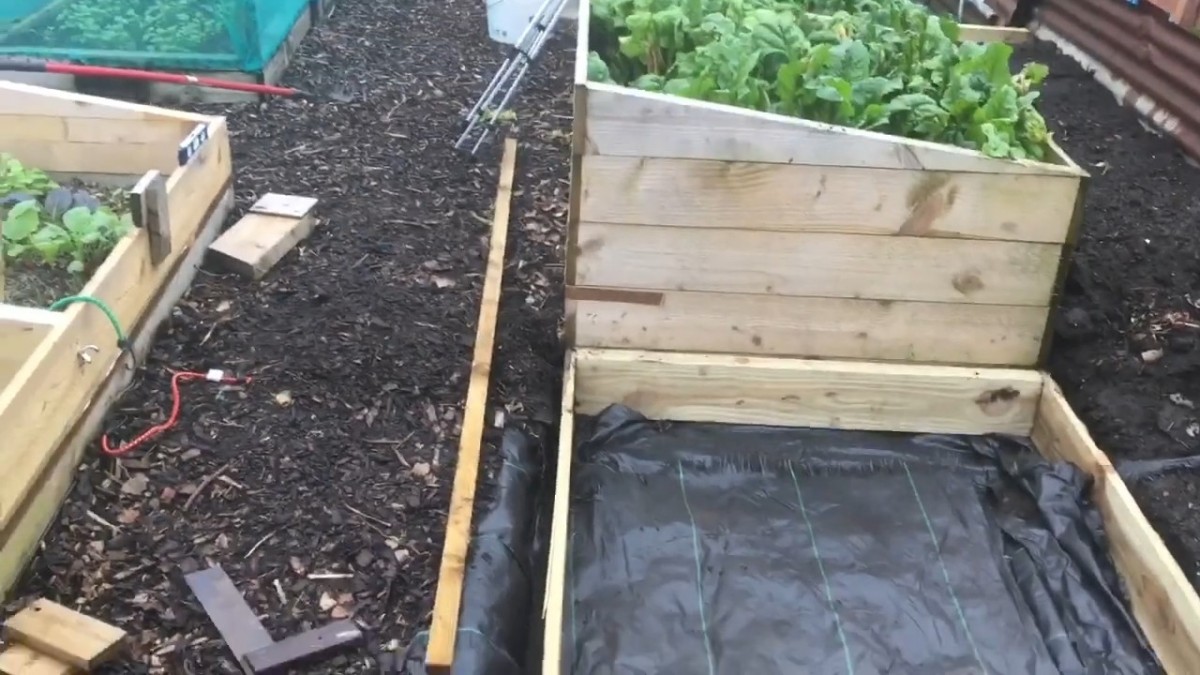 Detail rámu záhonu, pevně usazeného na zemi. Konstrukce udržuje vrstvu hnoje a kompostu stabilní
