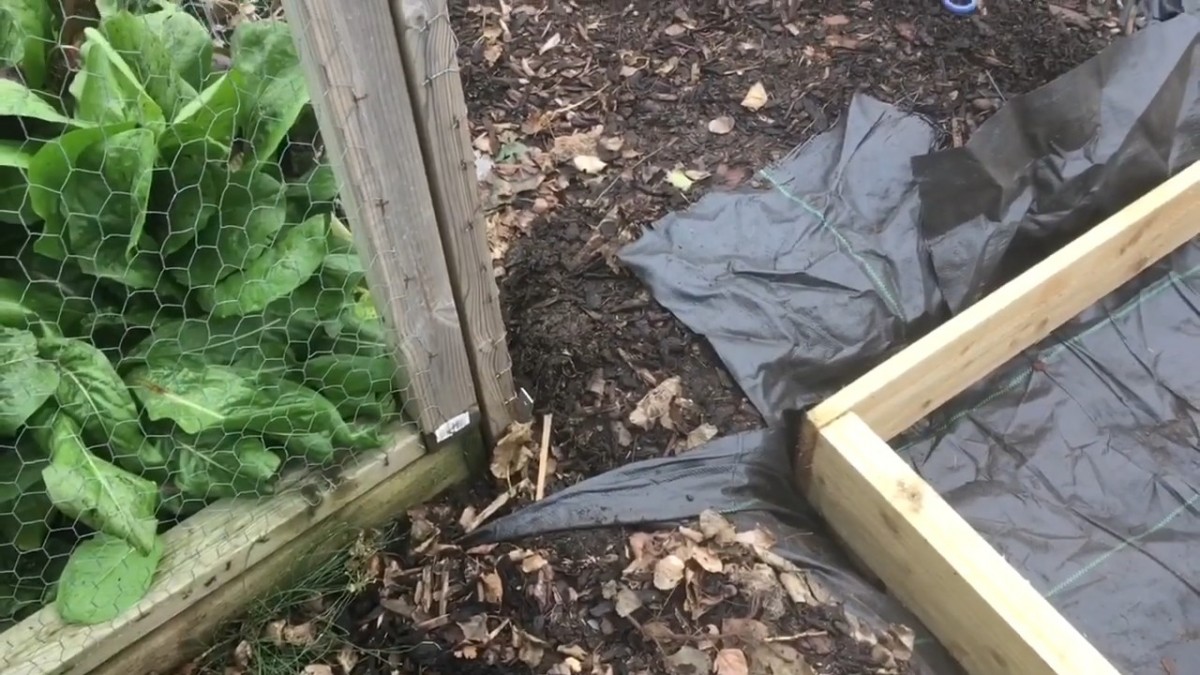 Roh záhonu s fólií na dně, připravený na vrstvy pěstební směsi. Zabraňuje kontaktu dřeva s vlhkostí a podporuje mikroklima