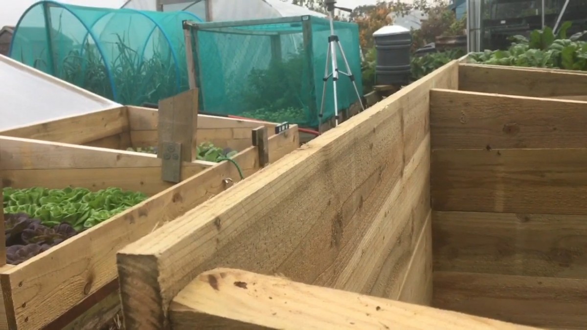 Boční prkna záhonu pevně usazena do země. Konstrukce chrání vrstvy půdy a organického materiálu před vysypáním