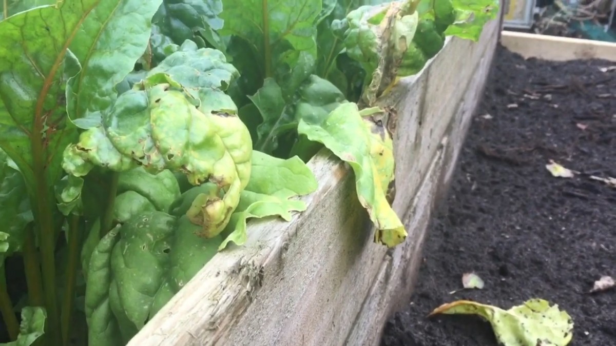 Pohled na listy zeleniny, které těží z mikroklimatu záhonu. Teplá půda urychluje růst a ochranu před mrazem