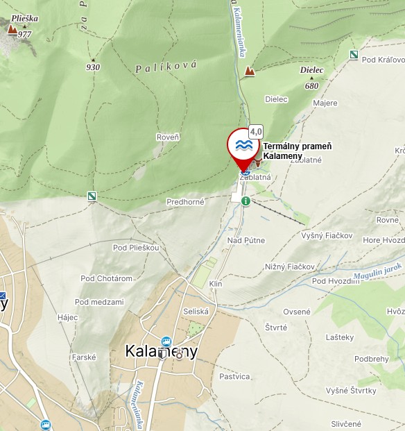 Termální jezírko Kalameny se nachází asi km severně od stejnojmenné obce