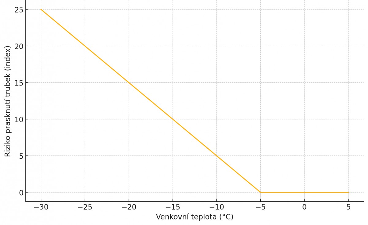 Riziko prasknutí vodovodních trubek v závislosti na venkovní teplotě