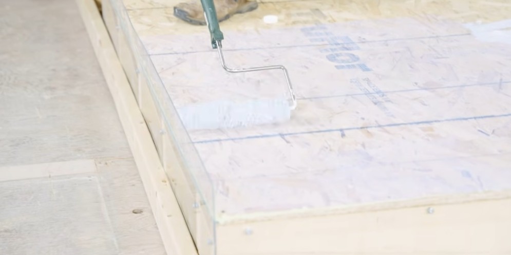 Na dřevěný podklad nanáší válečkem základní nátěr, který zlepší přilnavost samonivelační hmoty a zabrání tomu, aby dřevo při aplikaci nasávalo vlhkost
