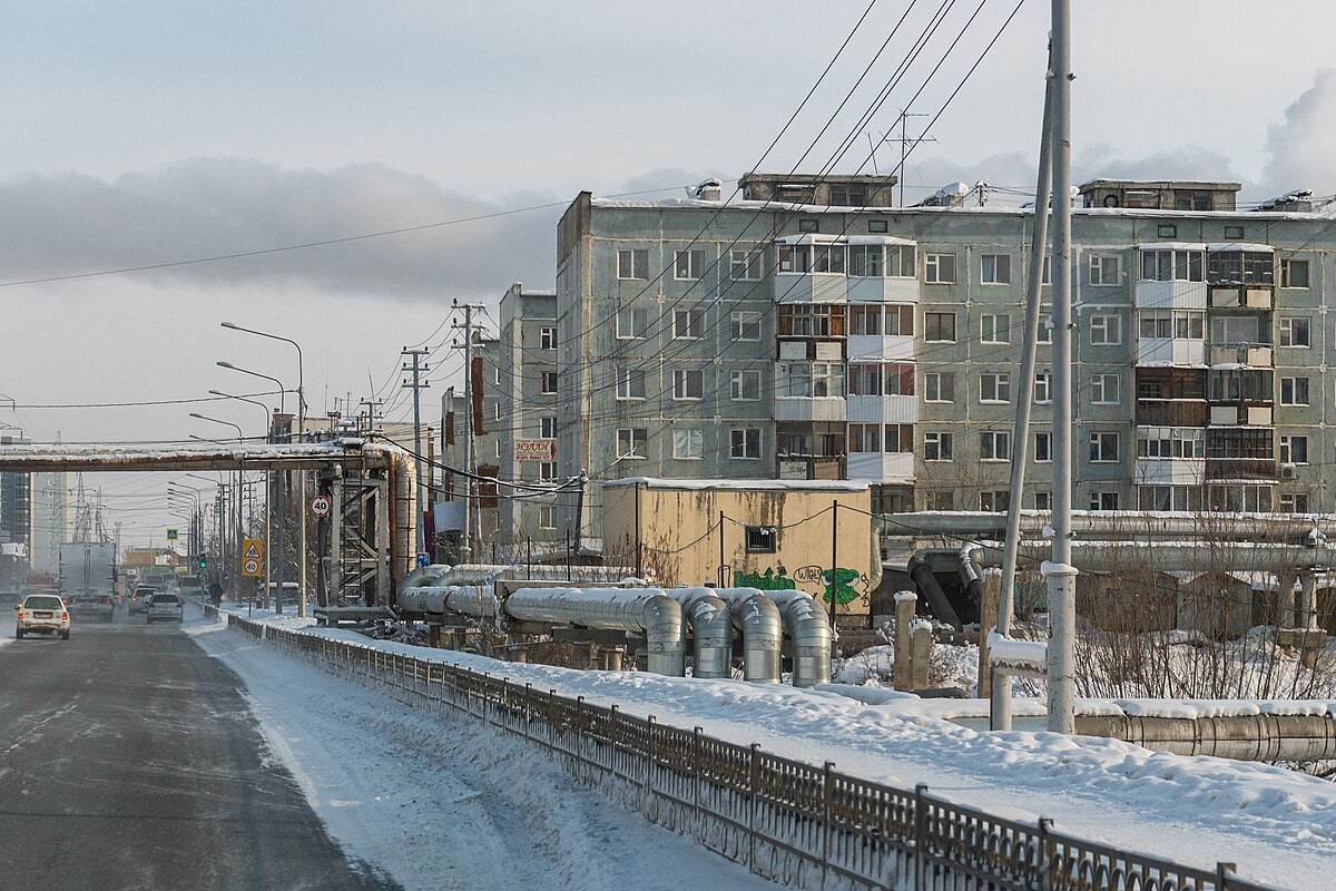 V extrémně chladných městech se rozvody tepla vedou nad zemí, aby bylo možné je průběžně kontrolovat, opravovat a chránit před poškozením v permafrostu