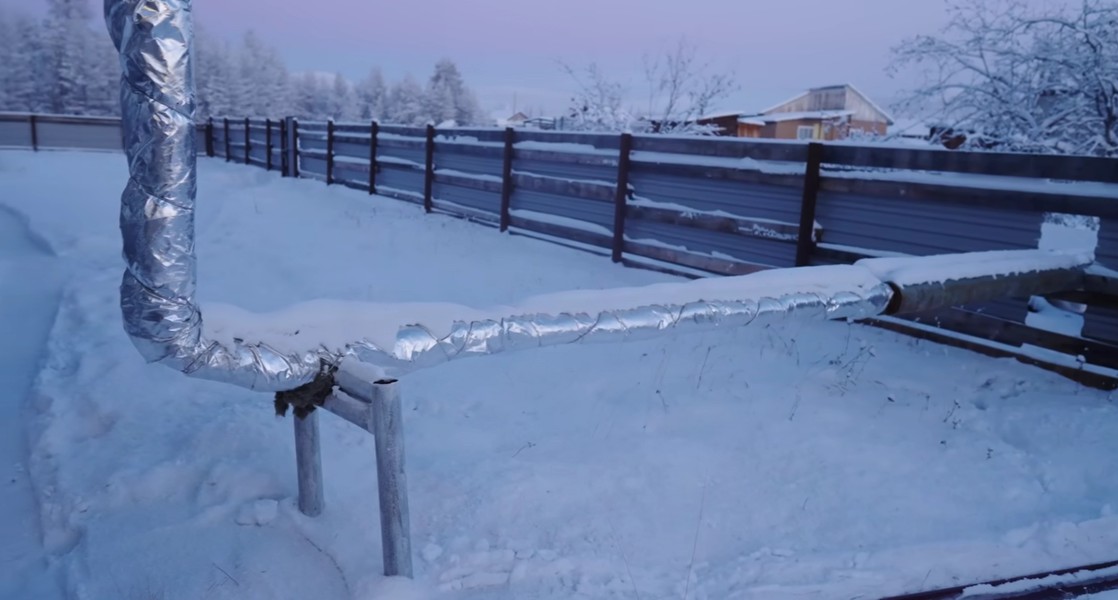 Rozvody vody a tepla se v extrémně chladných oblastech často vedou nad zemí, aby byly snadno kontrolovatelné a opravitelné v případě zamrznutí nebo poruchy
