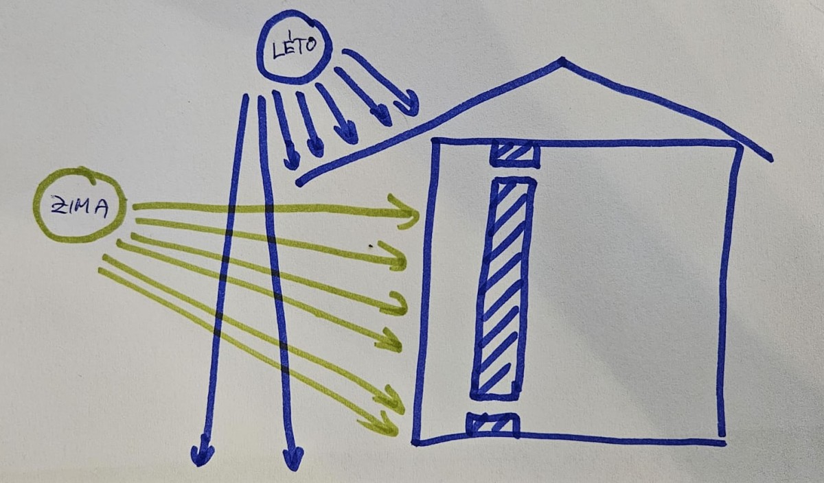 V zimě systém bezplatně vyhřívá dům, v létě je odstíněn přesahem střechy