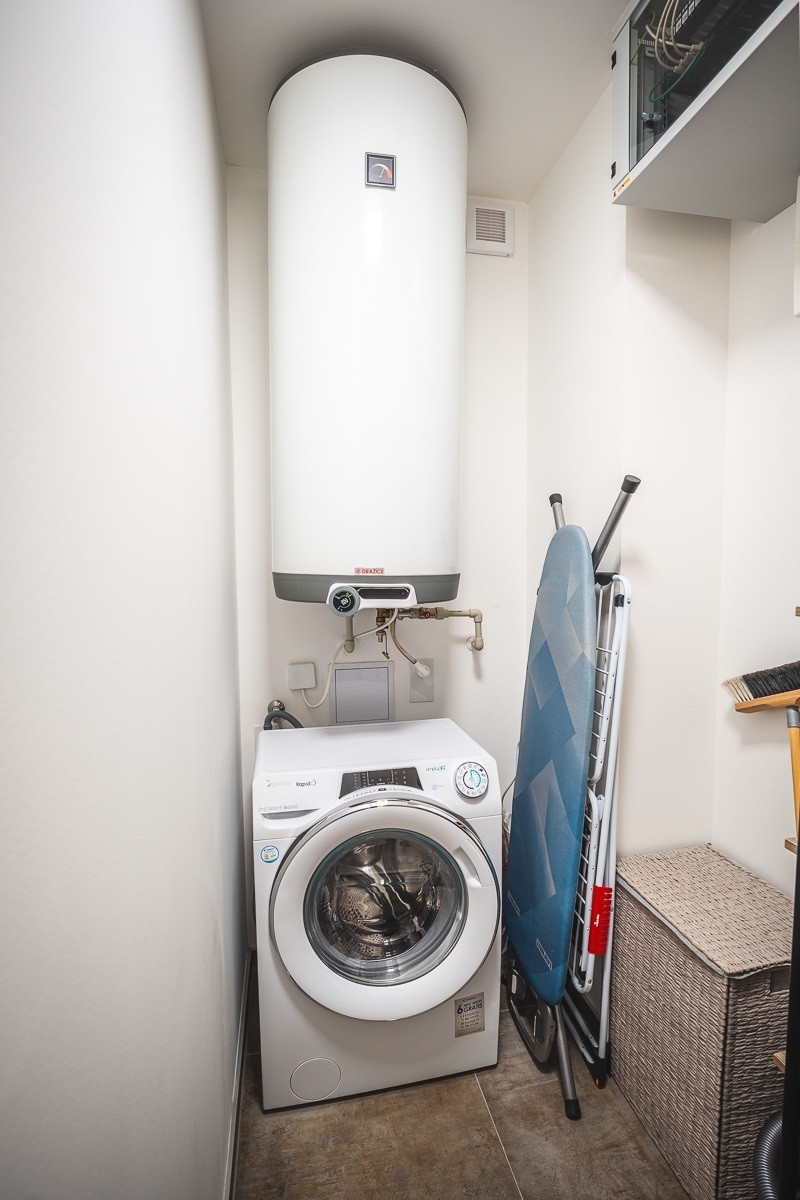 V domě je samozřejmě také technická místnost, kde se nachází pračka, bojler, elektrický a datový rozvaděč