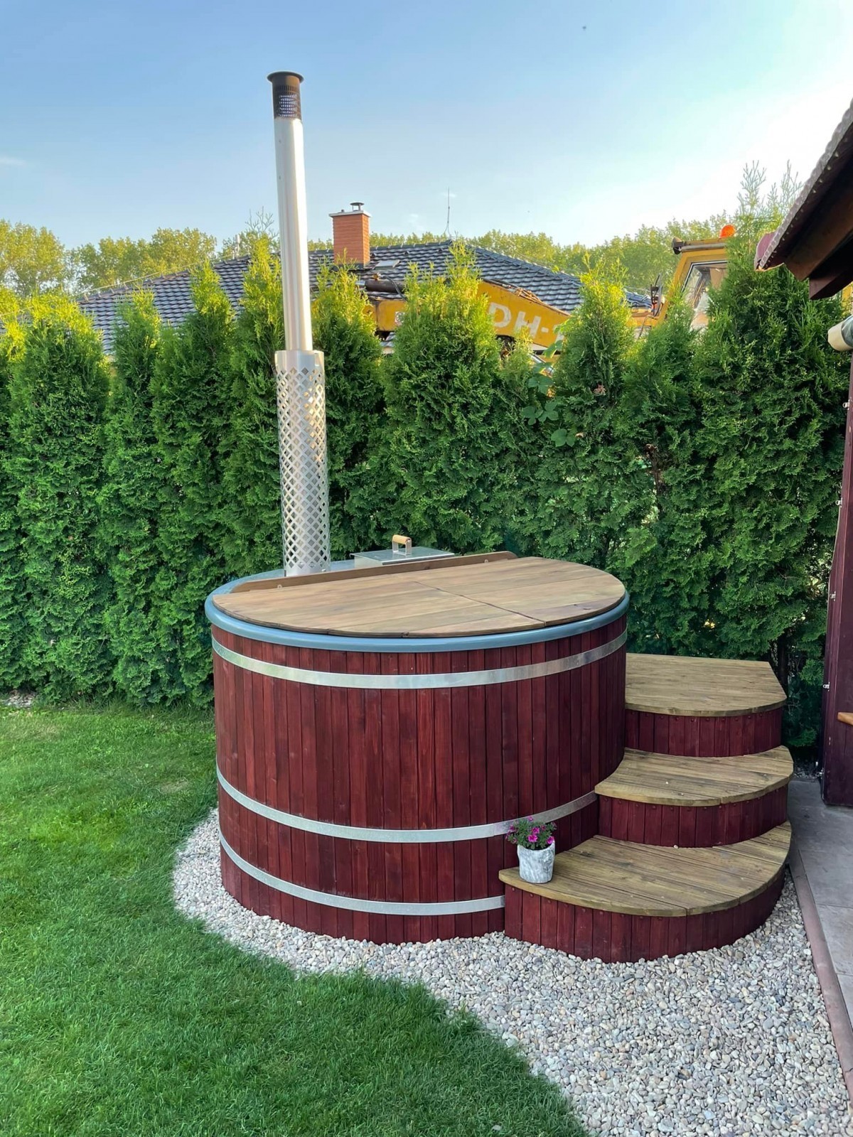 Oblíbený sklolaminátový koupací sud obložil kutil dřevem z estetických důvodů. Krásně tak zapadl na jeho zahradu