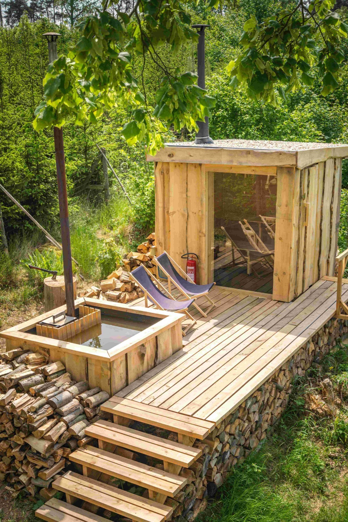Do kombinace s dřevěným sudem se hodí i venkovní posezení a v ideálním případě i sauna