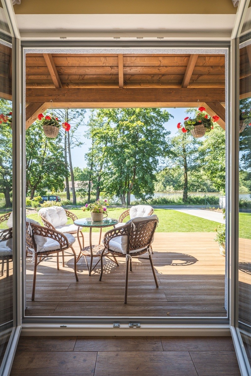 Díky francouzským oknům je dům krásně vyhřátý od sluníčka, dokonce i v zimě