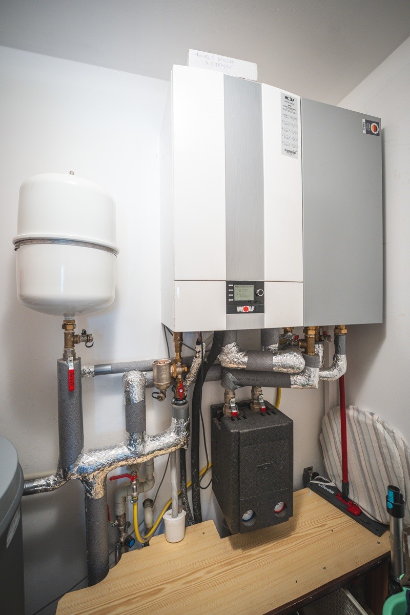 Technická místnost je navržená hned vedle předsíně a vzhledem k tomu, že v domě nemají příliš mnoho technologií, je poměrně malá