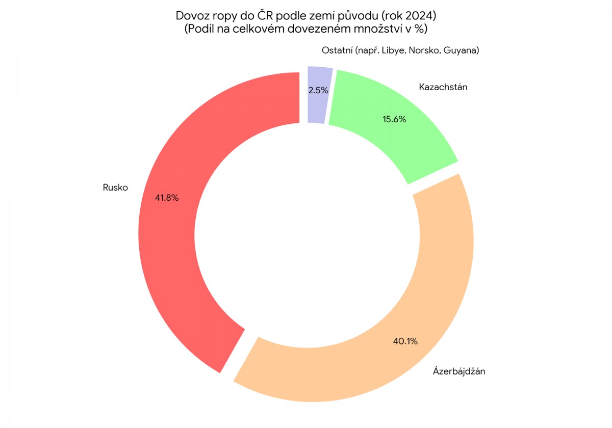 Závislost Česka na ruské ropě je stále enormní, jak ukazuje přehled zdrojů, ze kterých dovážíme