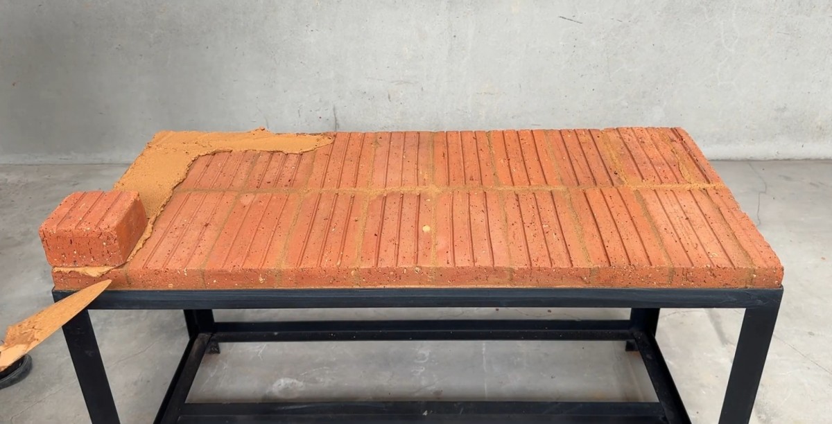 Hlavní výhodou těchto kamen je jejich praktičnost a překvapivě nízké pořizovací náklady. Díky tomu, že celá kamna leží na pevném ocelovém stole, je pracovní plocha v ideální výšce, takže se při vaření ani grilování nemusíte nepohodlně hrbit. Spodní část stolu navíc tvoří přirozený a suchý zásobník na palivové dřevo, které máte neustále po ruce. Další obrovskou předností je volba materiálů. Zatímco komerční grily často využívají drahé šamotové tvarovky a speciální tmely, tento projekt sází na obyčejné plné pálené cihly a přírodní maltu z jílu, písku a vody. Jílová směs výborně snáší tepelné změny, nepraská tak snadno jako tvrdý cement a v případě potřeby se dá stavba velmi snadno rozebrat nebo opravit.