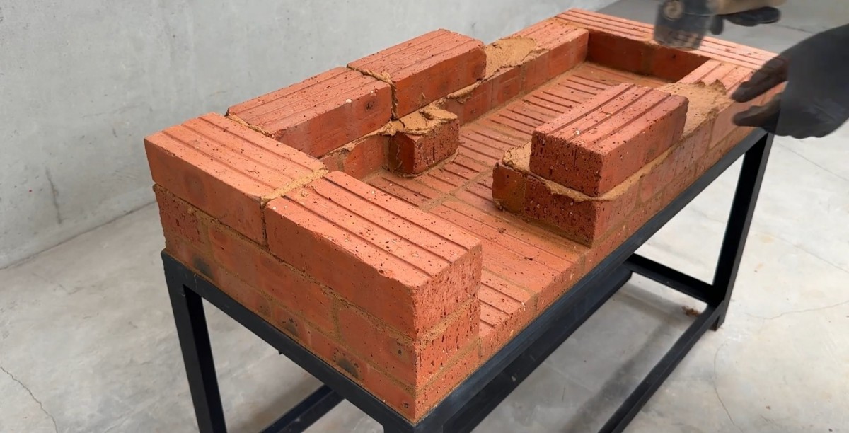 Hlavní výhodou těchto kamen je jejich praktičnost a překvapivě nízké pořizovací náklady. Díky tomu, že celá kamna leží na pevném ocelovém stole, je pracovní plocha v ideální výšce, takže se při vaření ani grilování nemusíte nepohodlně hrbit. Spodní část stolu navíc tvoří přirozený a suchý zásobník na palivové dřevo, které máte neustále po ruce. Další obrovskou předností je volba materiálů. Zatímco komerční grily často využívají drahé šamotové tvarovky a speciální tmely, tento projekt sází na obyčejné plné pálené cihly a přírodní maltu z jílu, písku a vody. Jílová směs výborně snáší tepelné změny, nepraská tak snadno jako tvrdý cement a v případě potřeby se dá stavba velmi snadno rozebrat nebo opravit.